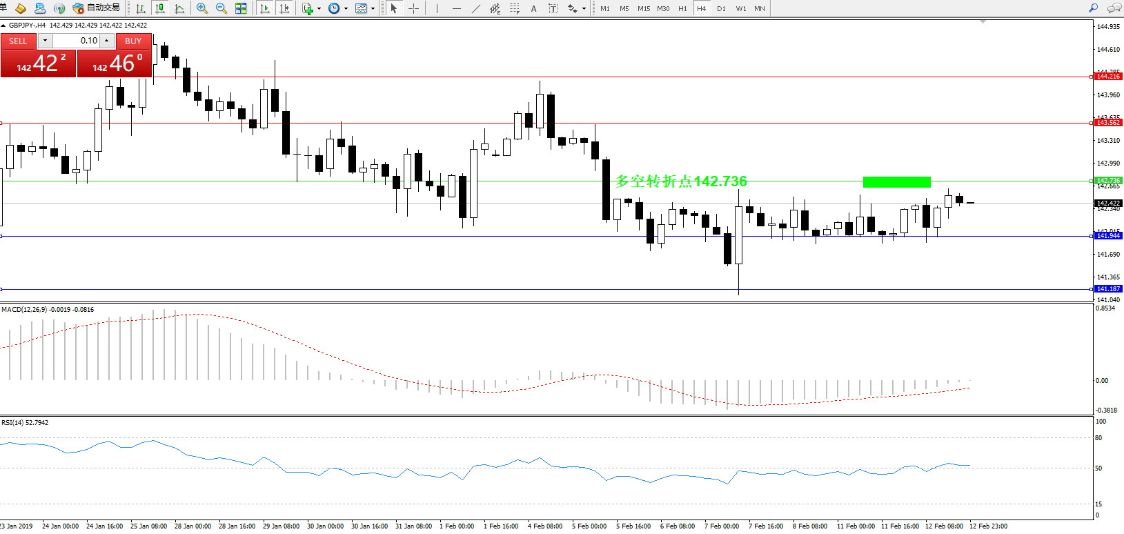 交易策略:142.736下方看跌,目标141.944、141.187