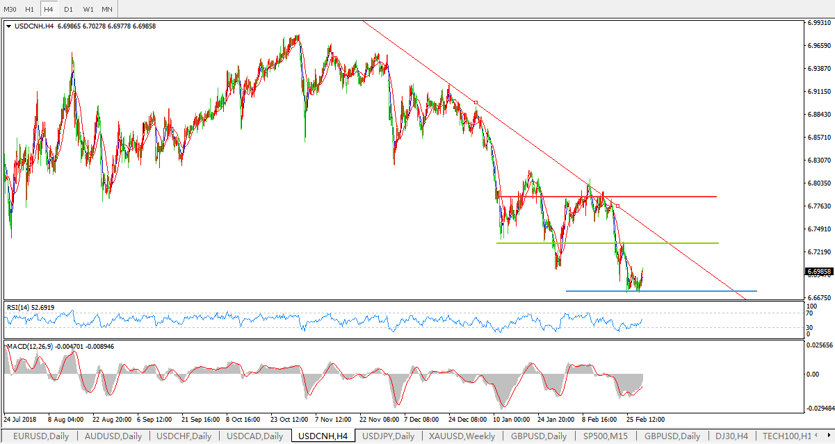 美元兑人民币USDCNH  4小时图: