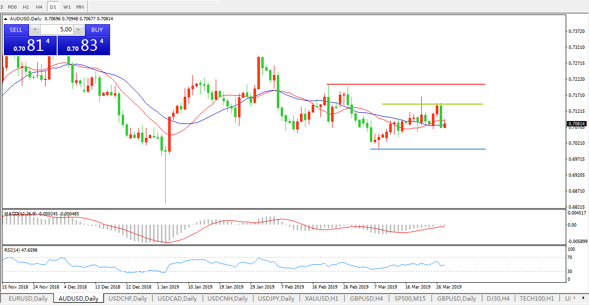 交易策略:在0.7140之下,看跌,目标价位为0.6990,然后为0.6940。