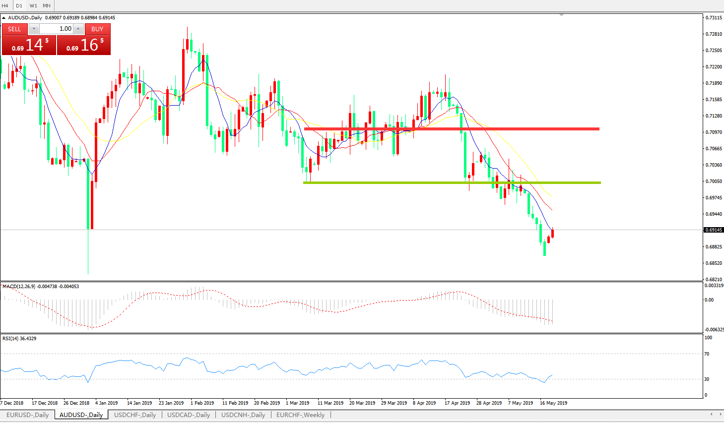 交易策略:在0.7000之下,看跌,目标价位为0.6900,然后为0.6830