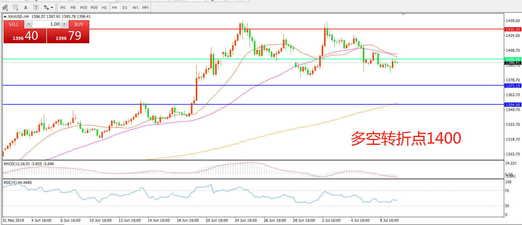 多空转折点:1400.00