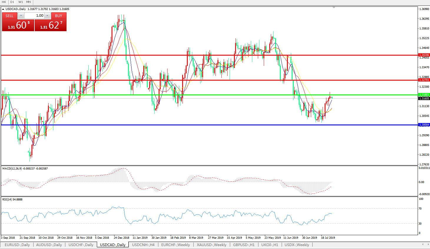 美元兑加元USDCAD    日线图: