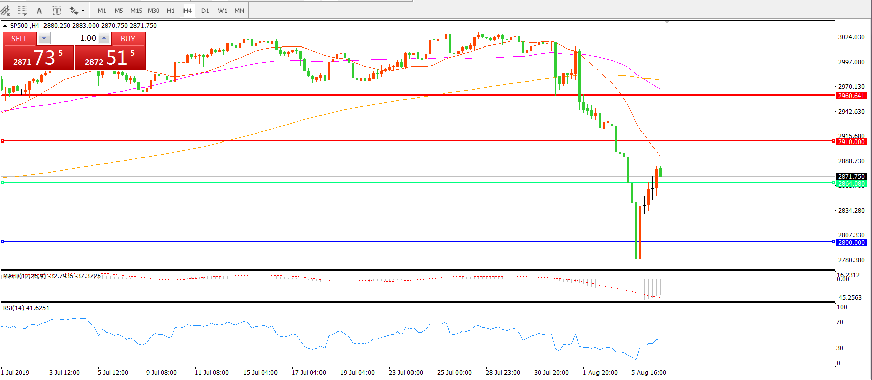 交易策略:在2864.00之下看跌,目标2800.00 2737.00