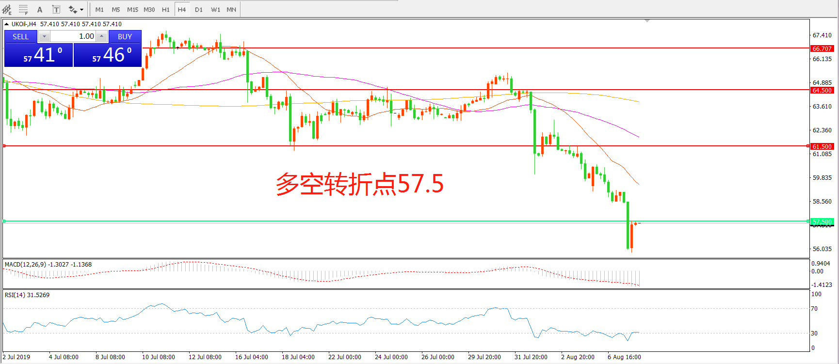 交易策略:在57.50之下看跌,目标53.00   50.00