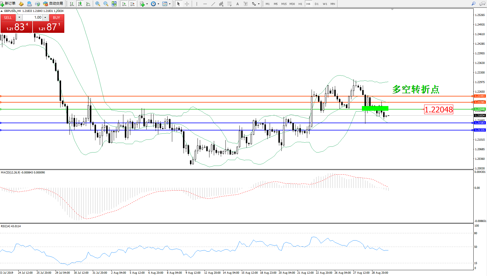 交易策略:1.22048下方看跌,目标1.21583、1.21335