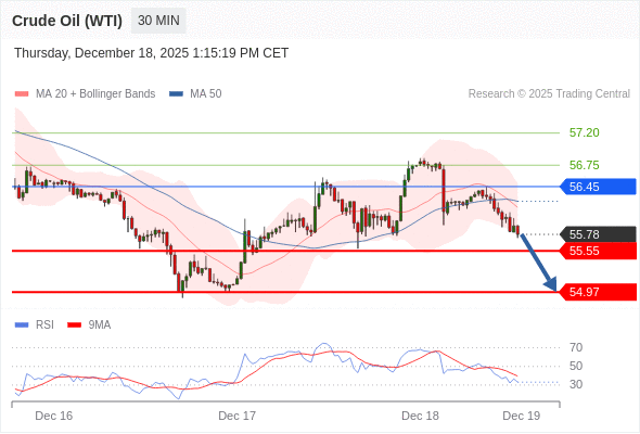 在 56.45 之下,看跌,目标价位为 55.55 ,然后为 54.97 。