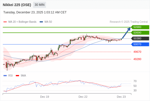 在 50070 之上,看涨,目标价位为 50690 ,然后为 50980 。