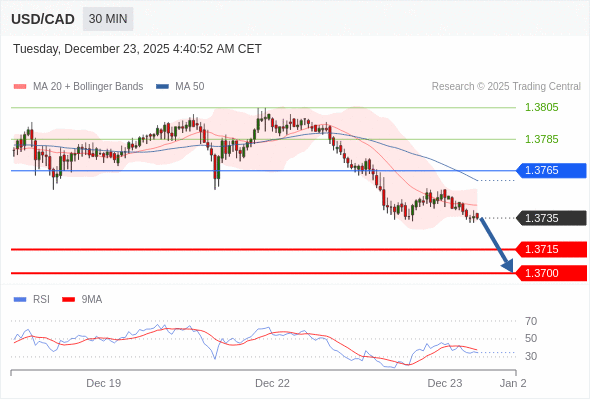 在 1.3765 之下,看跌,目标价位为 1.3715 ,然后为 1.3700 。