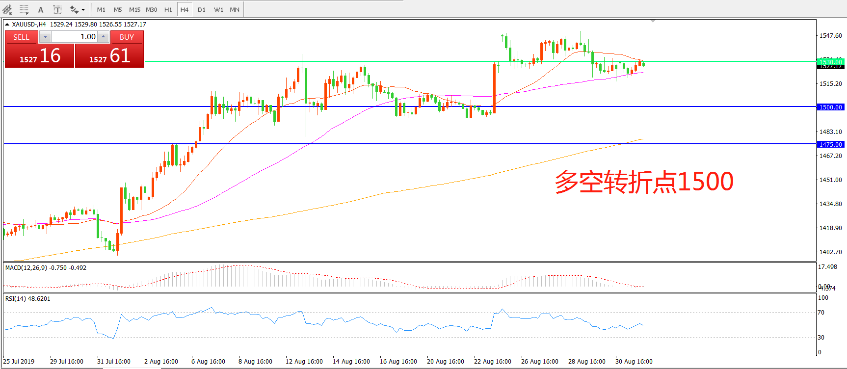备选策略:在1530.00之下看跌,目标1500.00   1475.00