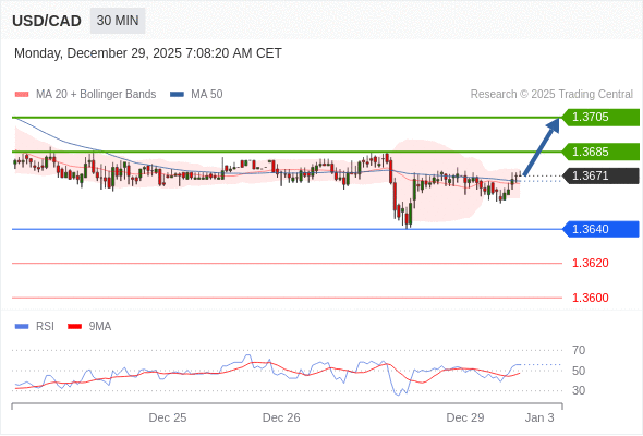 在 1.3640 之上,看涨,目标价位为 1.3685 ,然后为 1.3705 。