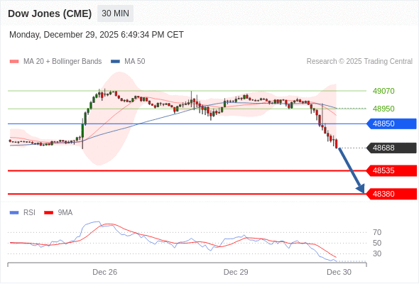 交易策略: 在 48850 之下,看跌,目标价位为 48535 ,然后为 48380 。