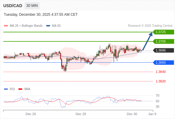 在 1.3660 之上,看涨,目标价位为 1.3705 ,然后为 1.3725 。