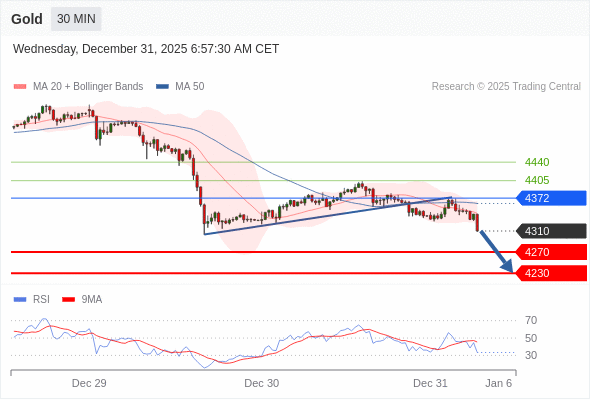 在 4372 之下,看跌,目标价位为 4270 ,然后为 4230 。