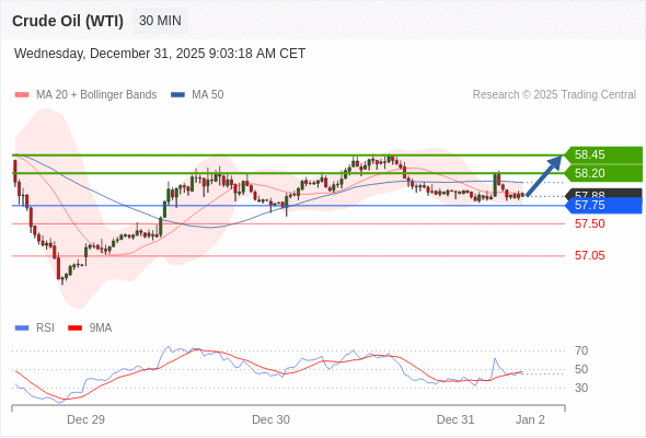 在 57.75 之上,看涨,目标价位为 58.20 ,然后为 58.45 。