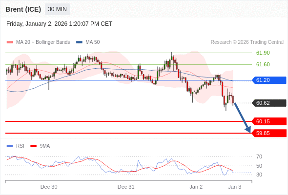 在 61.35 之下,看跌,目标价位为 60.15 ,然后为 59.85 。