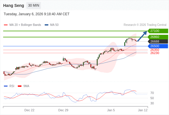 在 26500 之上,看涨,目标价位为 26860 ,然后为 27100 。