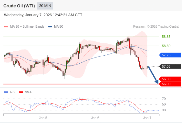 交易策略: 在 57.75 之下,看跌,目标价位为 56.30 ,然后为 56.00 。