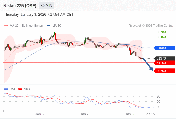 在 51900 之下,看跌,目标价位为 51150 ,然后为 50750 。