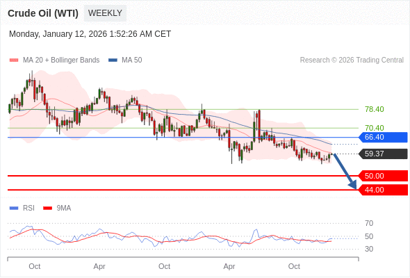 在 66.40 之下,看跌,目标价位为 50.00 ,然后为 44.00 。