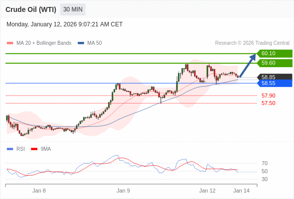 在 58.55 之上,看涨,目标价位为 59.60 ,然后为 60.10 。