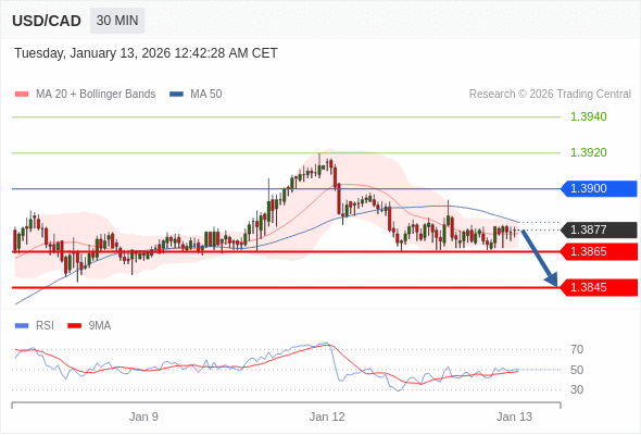 在 1.3900 之下,看跌,目标价位为 1.3855 ,然后为 1.3835 。