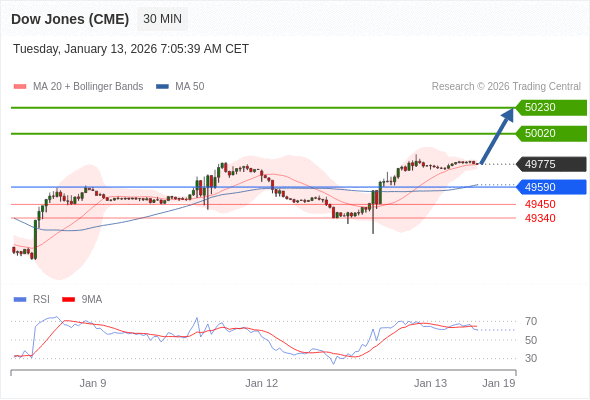 在 49590 之上,看涨,目标价位为 50020 ,然后为 50230 。