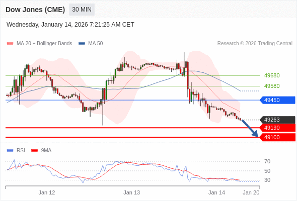 在 49450 之下,看跌,目标价位为 49190 ,然后为 49100 。