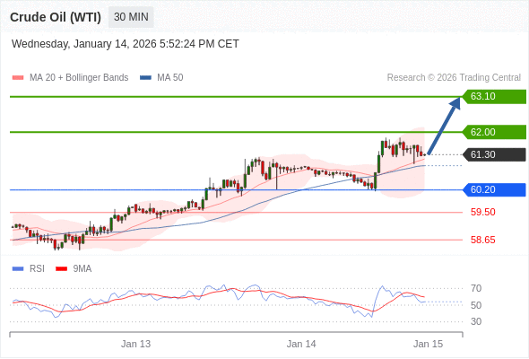 在 60.20 之上,看涨,目标价位为 62.00 ,然后为 63.10 。