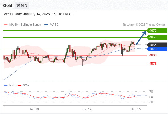 在 4620 之上,看涨,目标价位为 4655 ,然后为 4675 。