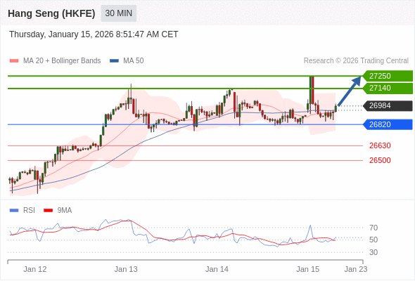 在 26820 之上,看涨,目标价位为 27140 ,然后为 27250 。
