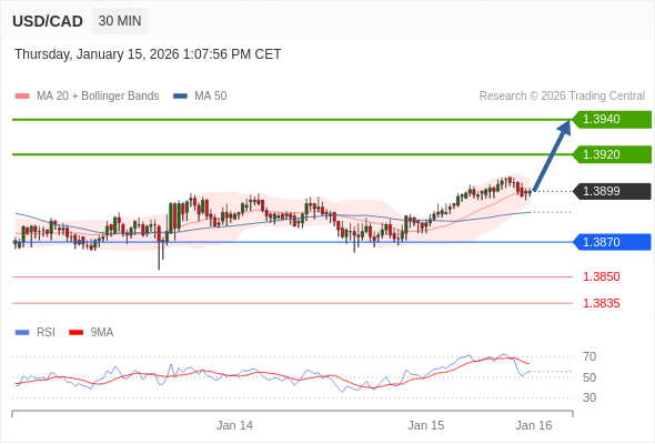 在 1.3870 之上,看涨,目标价位为 1.3920 ,然后为 1.3940 。