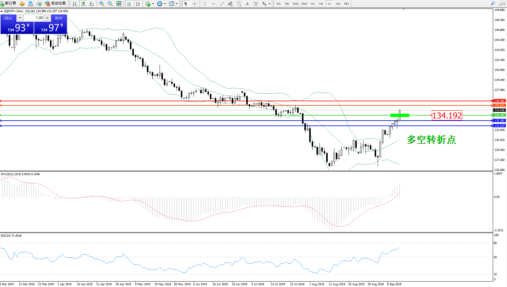 交易策略:134.192上方看涨,目标135.631136.306