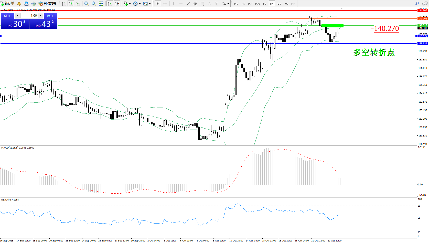 交易策略:140.270下方看跌,目标139.579138.932