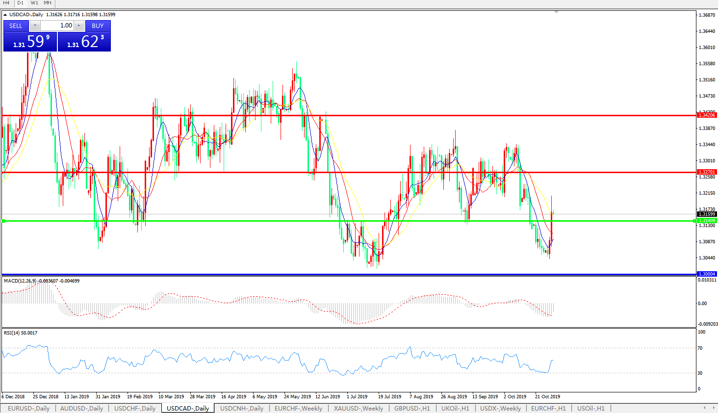 美元兑加元USDCAD 日线图: