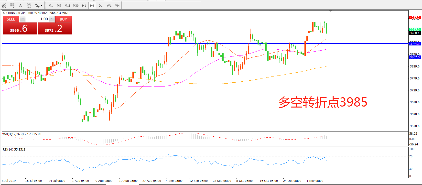 多空转折点:3985.00
