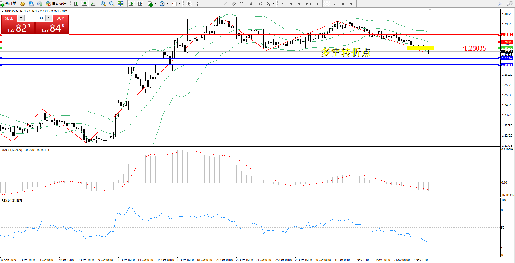 交易策略:1.28035下方看跌,目标1.27367、1.26955