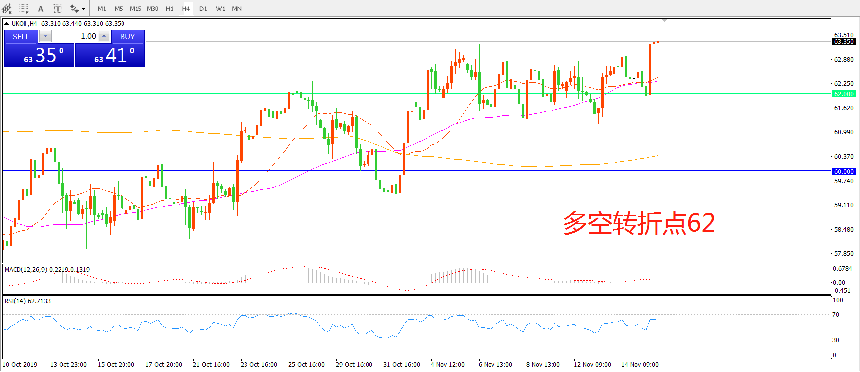 多空转折点:62.00