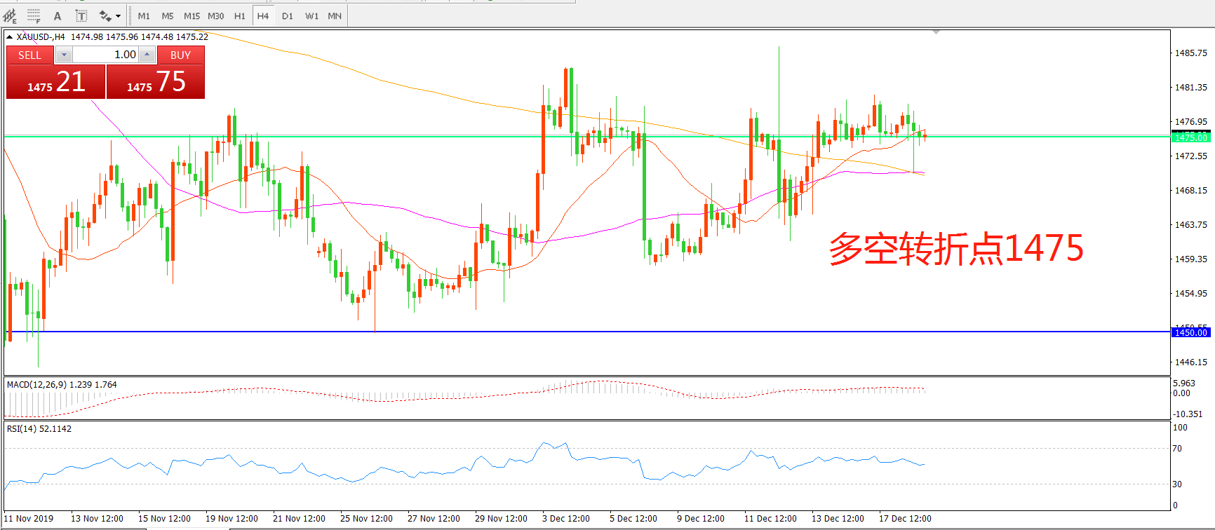 多空转折点:1475.00