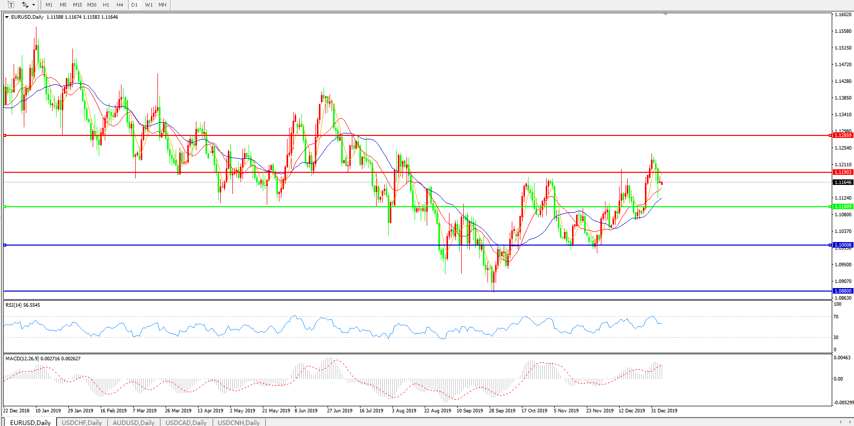 交易策略:1.1100上方看涨,目标1.1200、1.1285