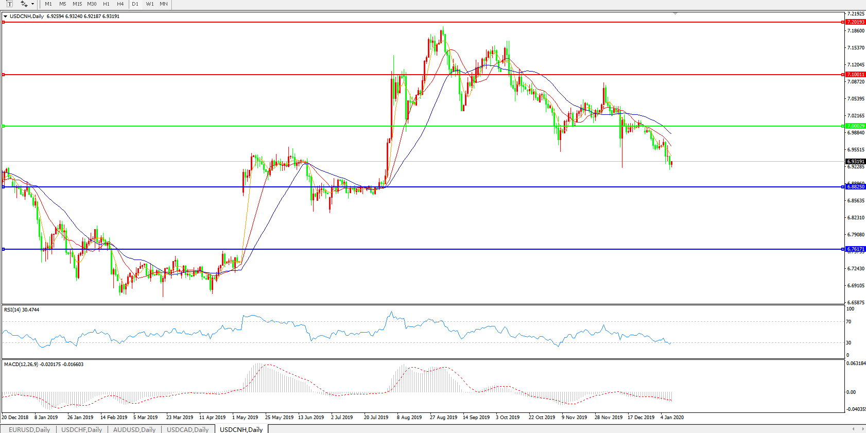 交易策略: 在7.0000之下,看跌,目标价位为6.8820,然后为6.7600。