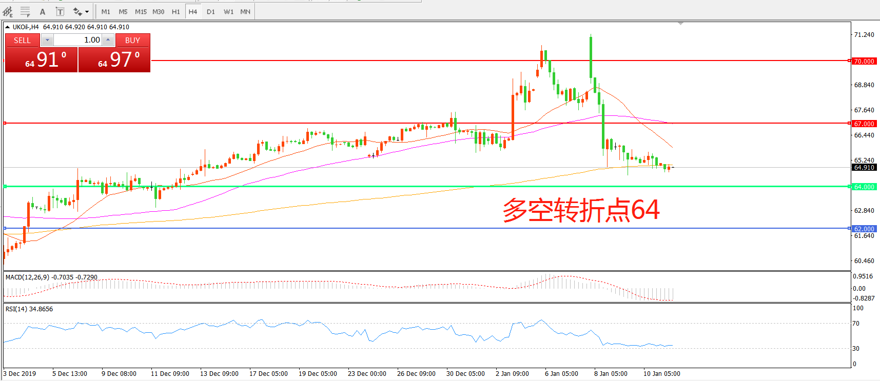 多空转折点:64.00
