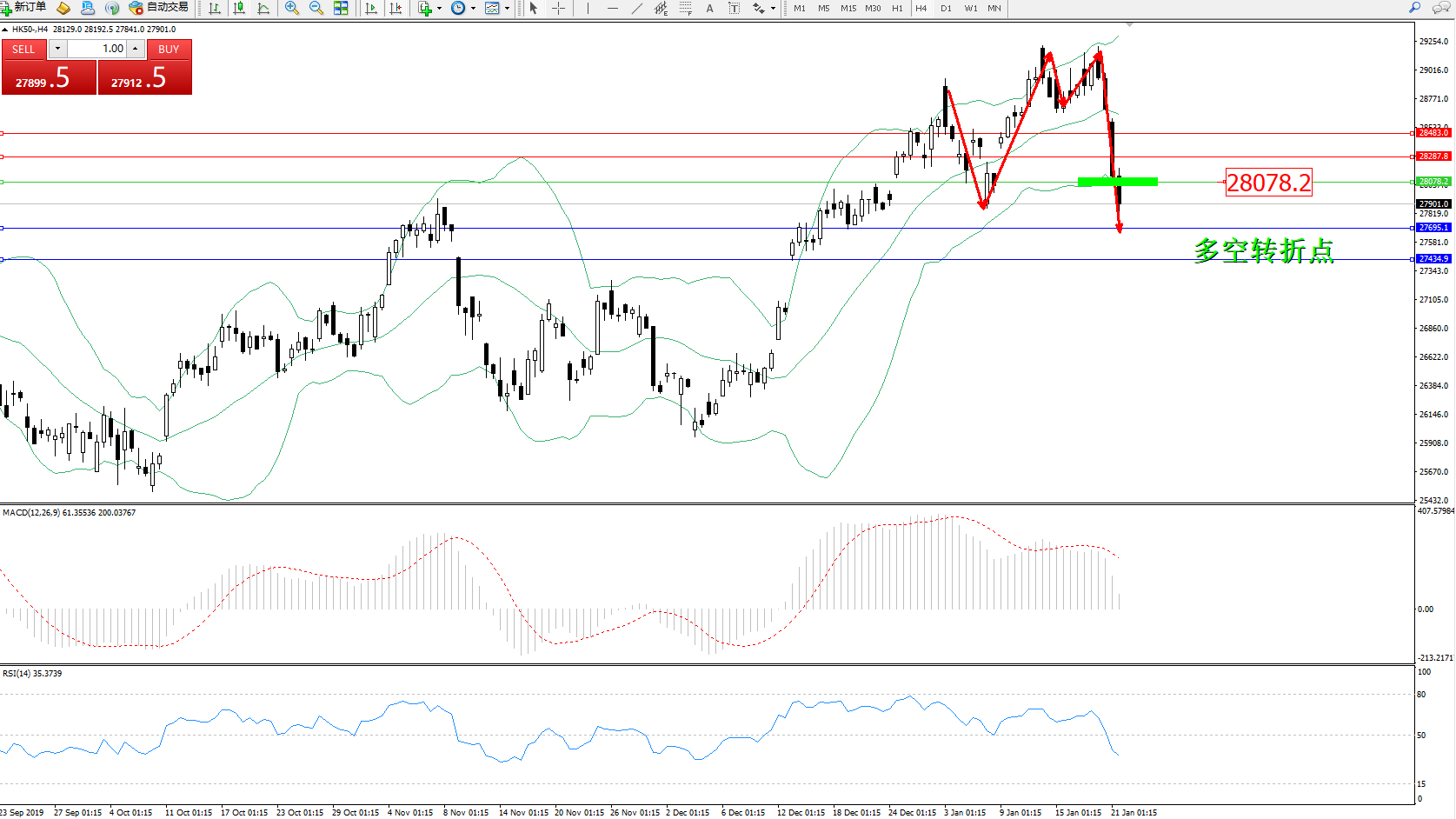 香港恒生指数121日(周二)收盘下跌810.58点,跌幅2.81%,报27985.33点;恒生香港中资企业指数收跌3.03%,报4437.47点。恒生12个分行业指数全线走软,其中非必需性消费品、必需性消费品指数跌幅最高,分别下跌3.67%3.59%;医疗保健业、公用事业指数跌幅最低,分别下跌1.38%1.46%。资金流向方面,沪港通南向资金剩余421.39亿元,流出1.39亿元。深港通南向资金剩余409.54亿元,流入10.46亿元。消费股遭受重创。航空、餐饮、影视板块均普跌。受国内武汉流感消息面影响,部分医药股逆市上扬。港股市场多数股票(超过2000)反映了中国经济的基本面情况,而从全球比较来看,2020年中国经济增速仍可维持相对较高的增速,港股市场对于全球资金配置者而言具备较高的性价比。