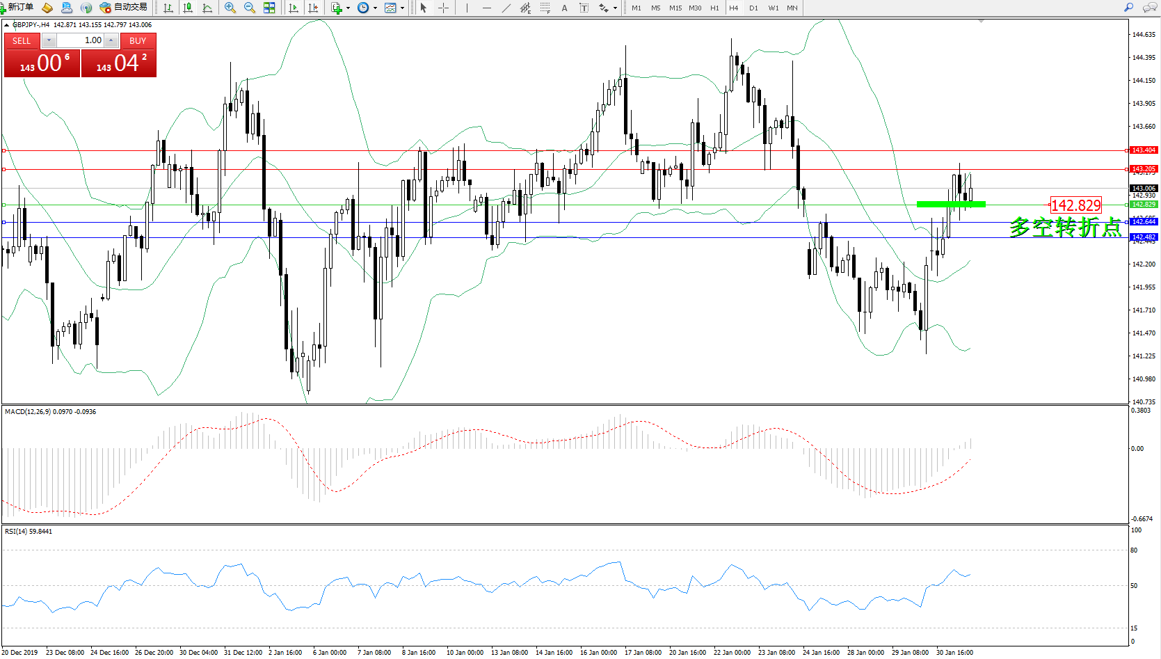 交易策略:142.829上方看涨,目标143.205143.404