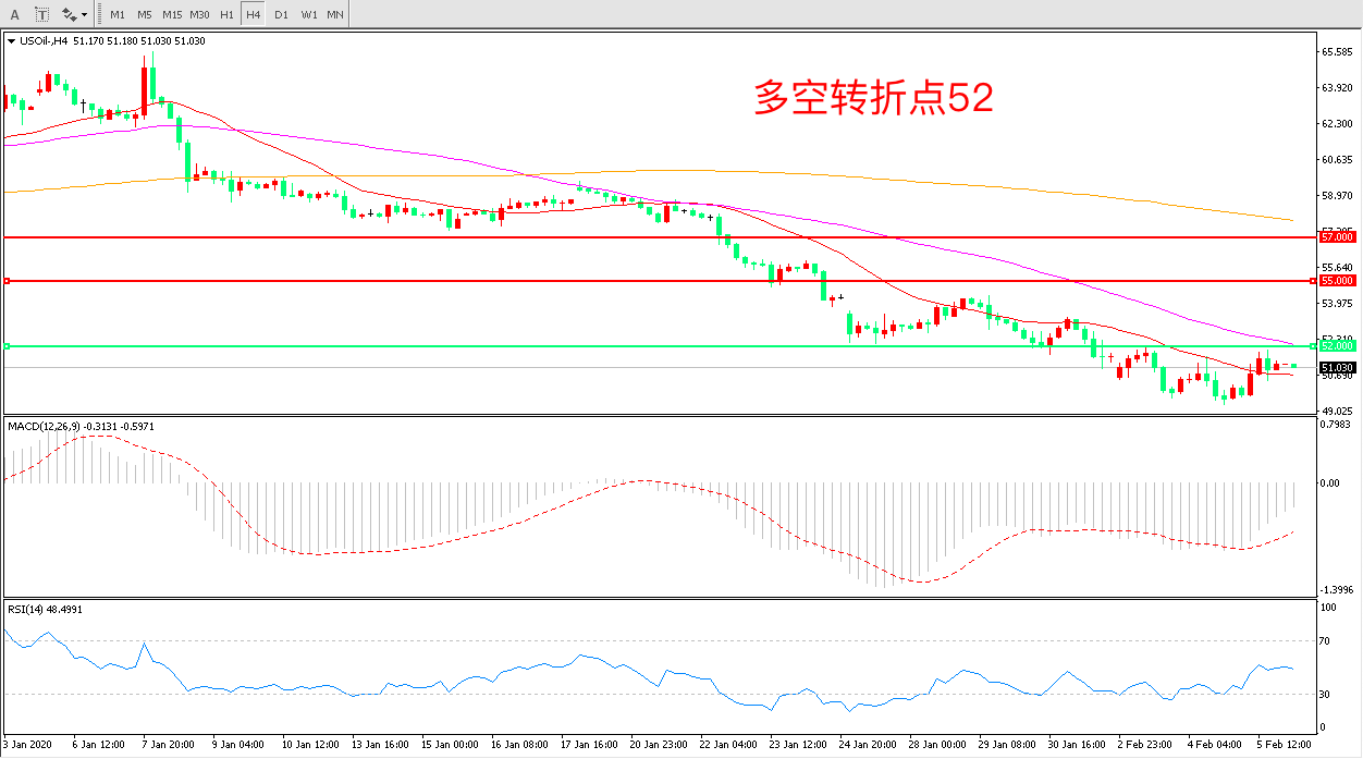 交易策略:在52.00之下看跌,目标49.00 45.00