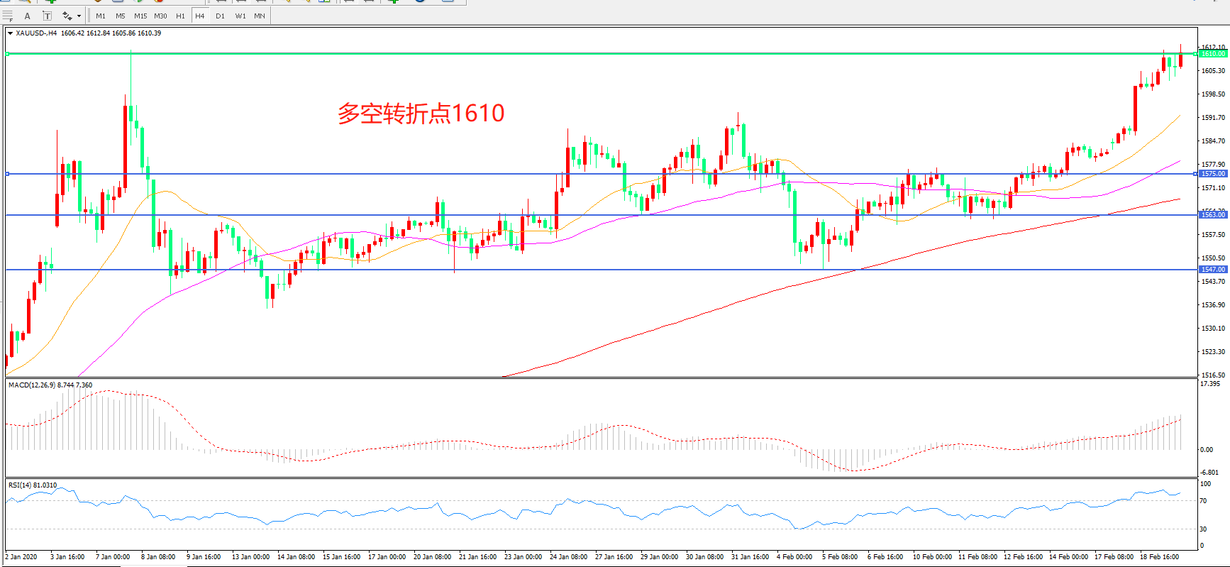 交易策略:在1610.00之上看涨,目标1650.00   1700.00