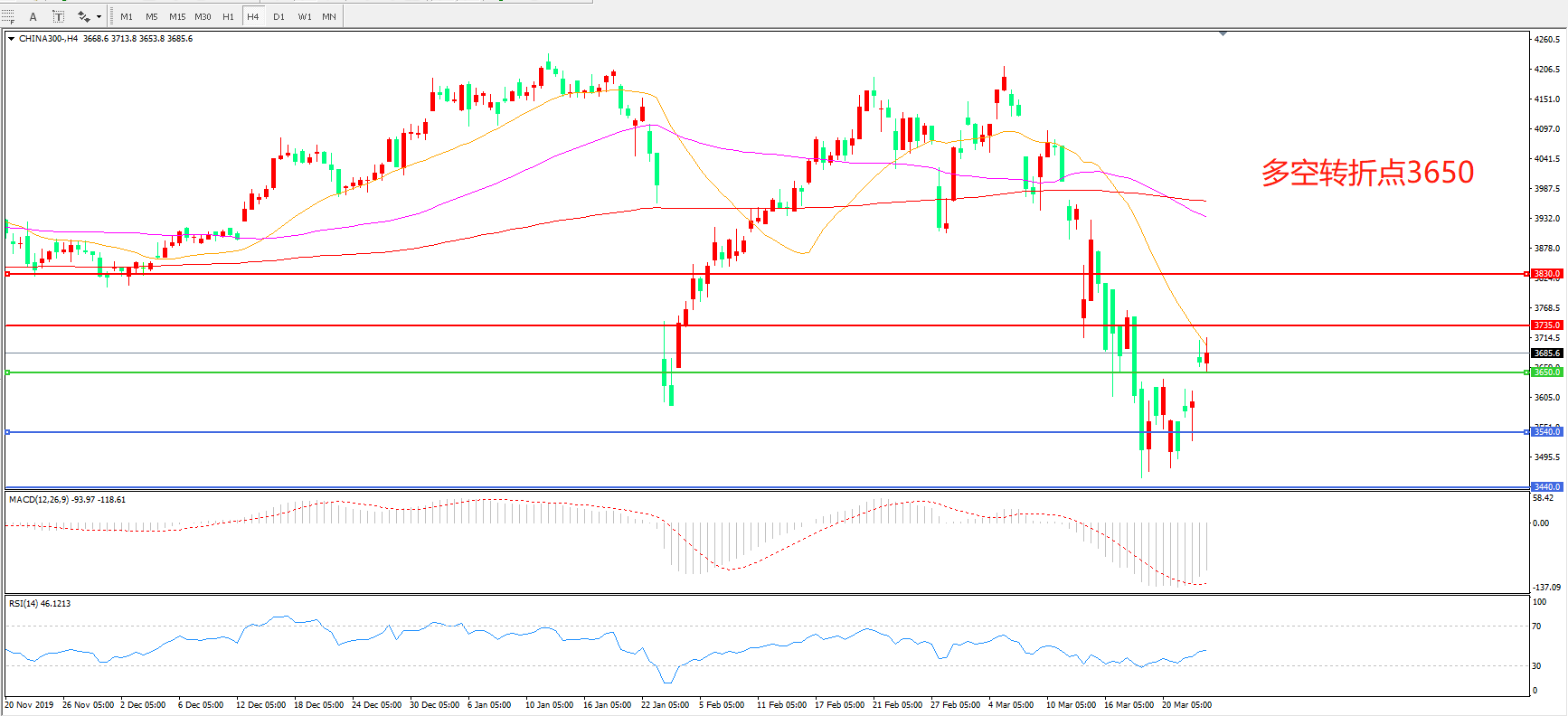 4小时图看,沪深300高开高走,短期反弹较为强势,但均线系统呈空头排列,MACD绿柱缩短,RSI指标走平,日内震荡上行概率较大。