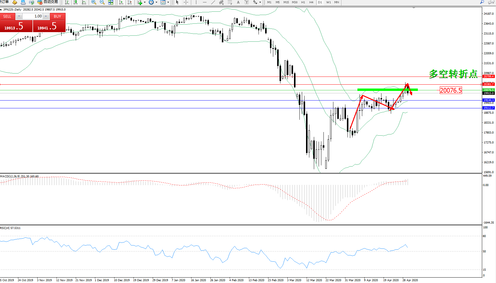 日经225指数430日(周四)收盘上涨431.31点,涨幅2.18%,报20202.50点。日本股市周三休市后恢复交易,日经指数跳涨2.5%至七周高位,追上了本周的涨势。亚洲股市周四涨至七周新高,受新冠药物乐观试验结果提振。利德科学的试验性抗病毒药物瑞德西韦将成为新冠肺炎的标准用药,此前周三一项关键临床试验的早期结果显示,该药物有助于加快病患从新冠肺炎中恢复的速度。