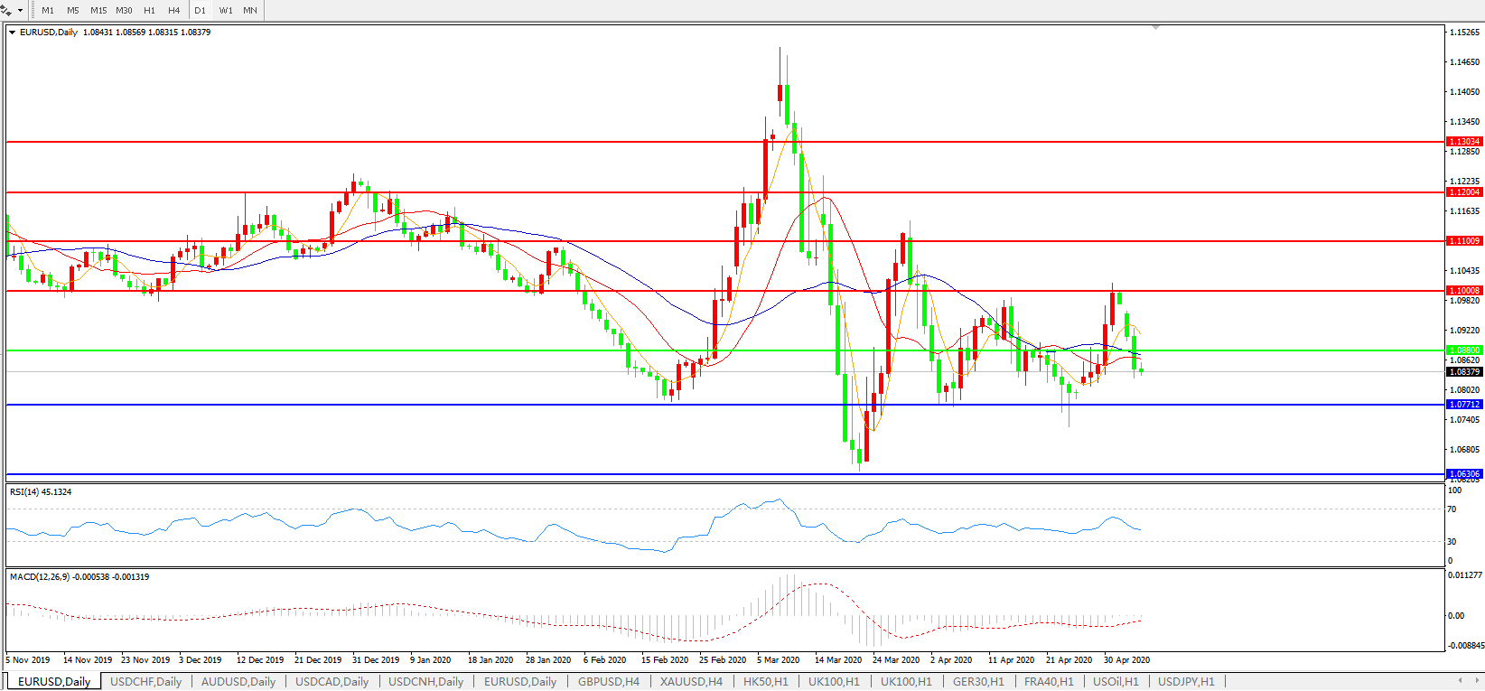 欧元兑美元EURUSD   日线图:
