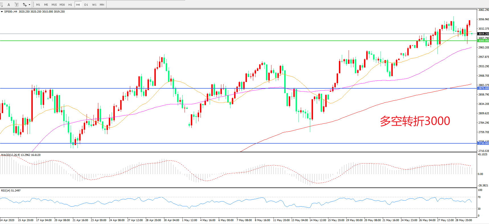 多空转折点:3000.00