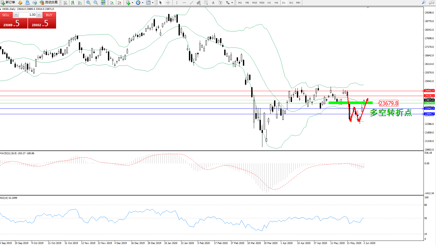 恒指HK50 ——日K线图显示: